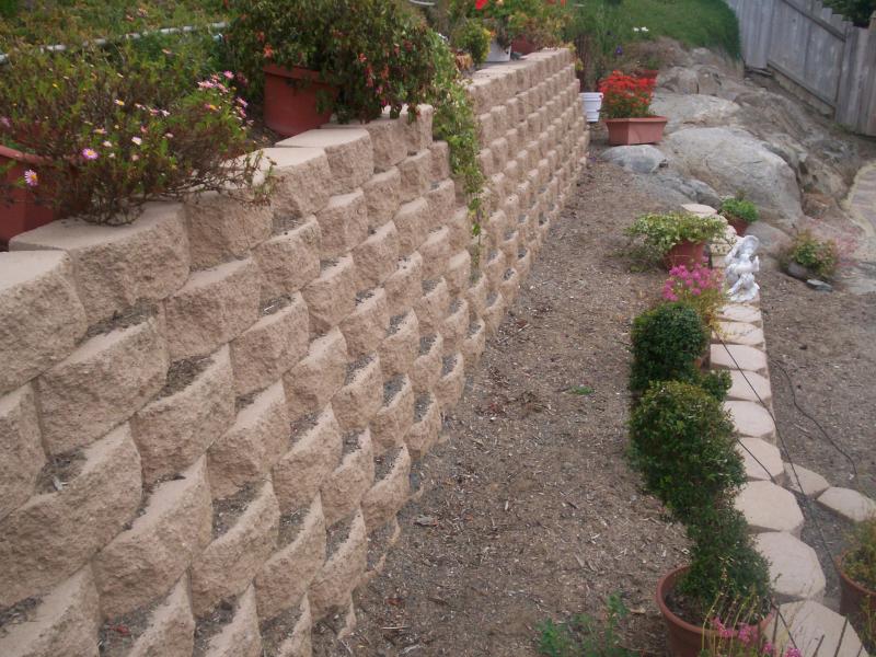 CINDER BLOCK WALL / SANTA BARBARA STUCCO FINISH WITH COUNTRY MANOR WALL CAPS / WITH COUNTRY MANOR WALL ON PAVER RAMP